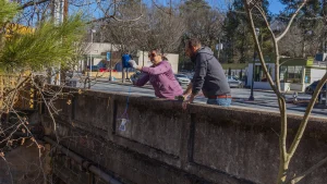 Two neighborhood residents collect a water sample in Emory Village. Photo by Jennifer Camacho